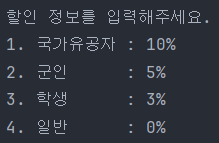 // 1번을 누르면 할인 정보를 제공해줍니다.