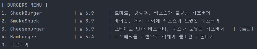 - `printCartItemsWithTotal()`: 장바구니에 담긴 메뉴와 총 금액 출력