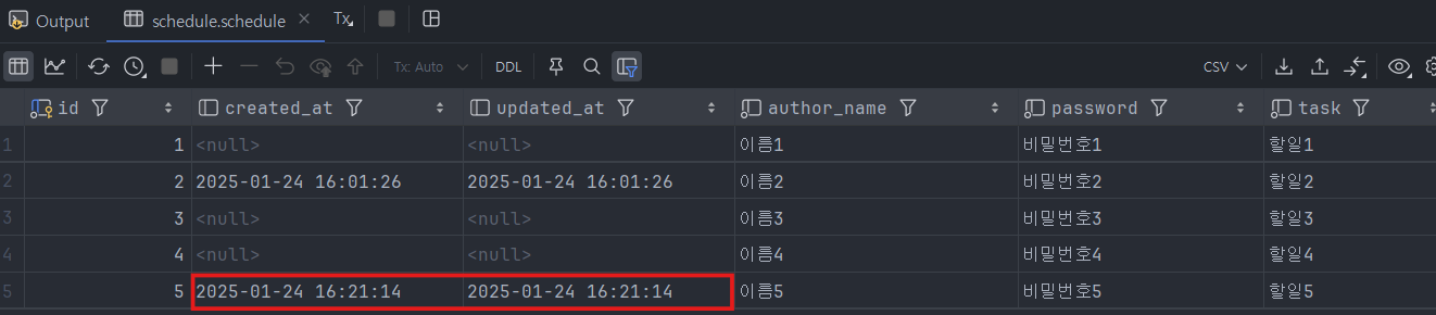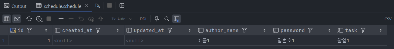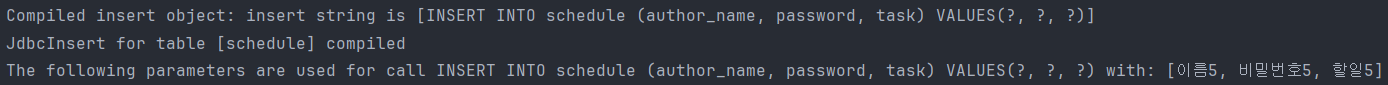 created_at과 updated_at은 default값을 설정해놔서 작성자명, 비밀번호, 할일만 JSON 데이터로 requestBody에 넣어 전달했습니다.
