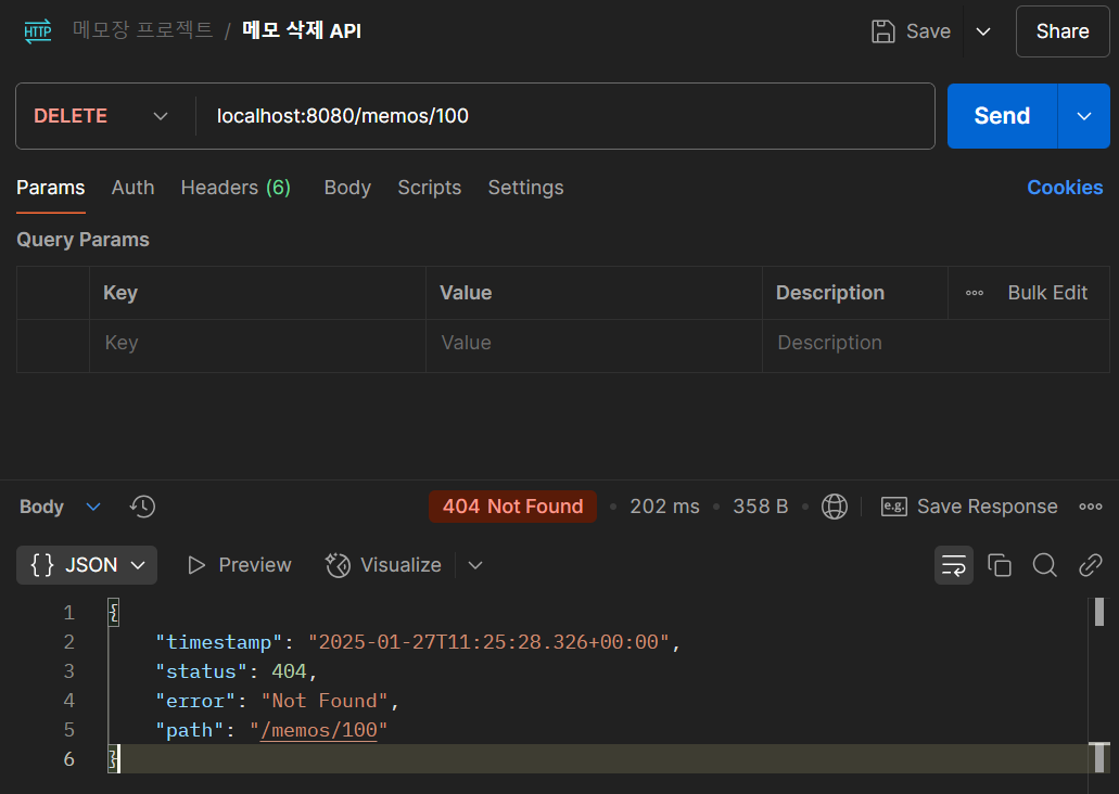 테스트 과정에서 존재하지 않는 id로 요청했을 때 HTTP 상태 코드가 적절하지 않게 나온다는걸 확인했습니다.