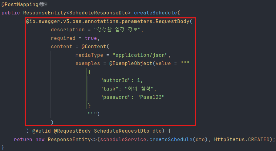 public ResponseEntity<ScheduleResponseDto> createSchedule(@Valid @RequestBody ScheduleRequestDto dto)