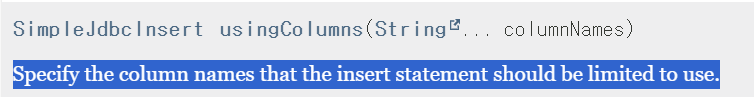 jdbcInsert.usingColumns("author_name", "password", "task");