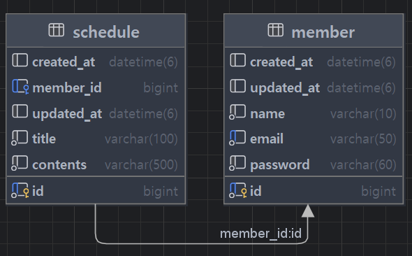 Schedule 엔티티와 Member 엔티티가 연관관계를 가지도록 구현했습니다.