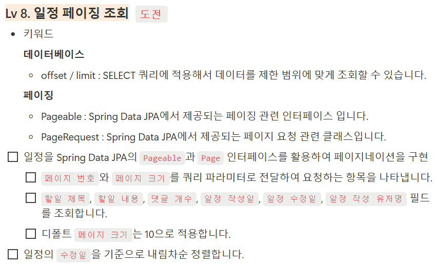 Lv 8. 일정 페이징 조회