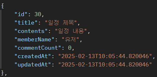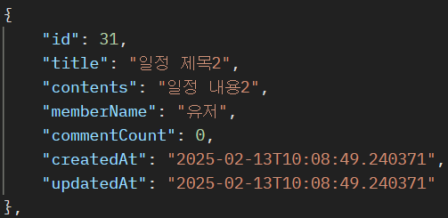 그런데 실행해보니 일정 수정 API의 response로 updatedAt이 반영이 안된걸 확인했습니다.