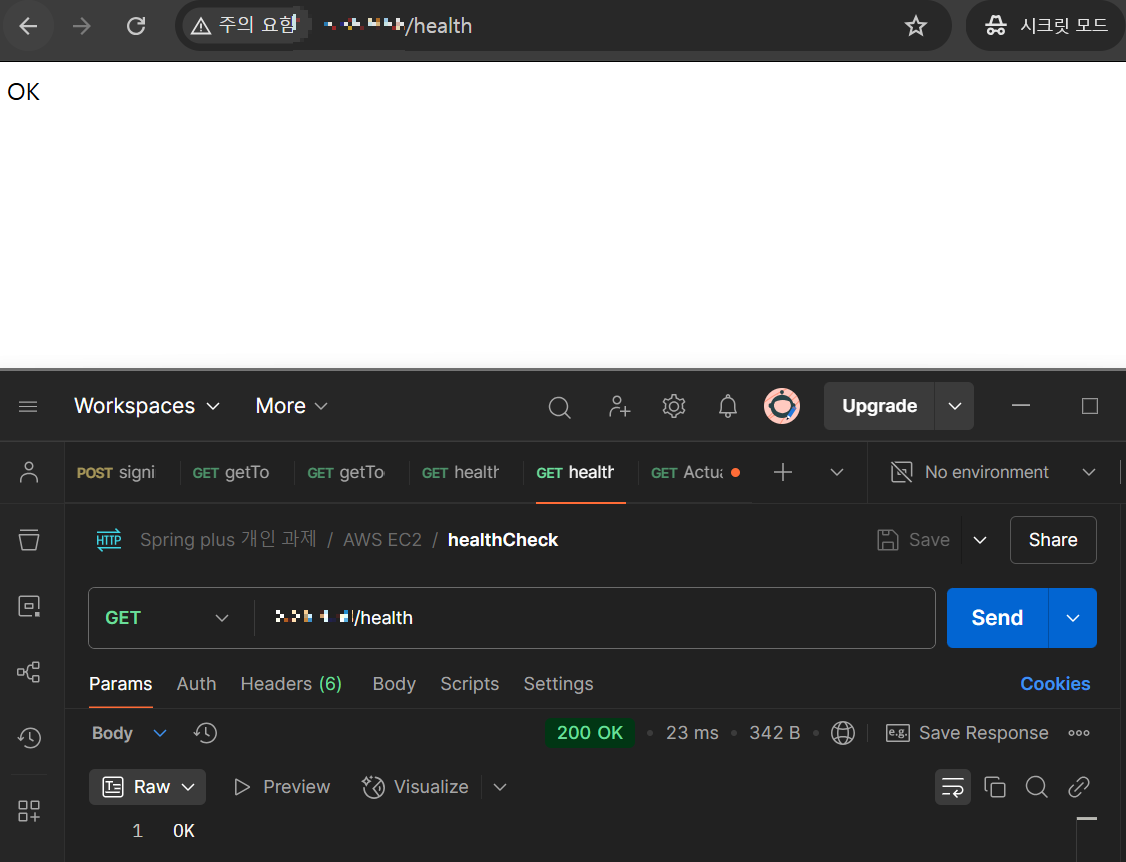 - 결과 - `<EC2 퍼블릭 IP>/health`