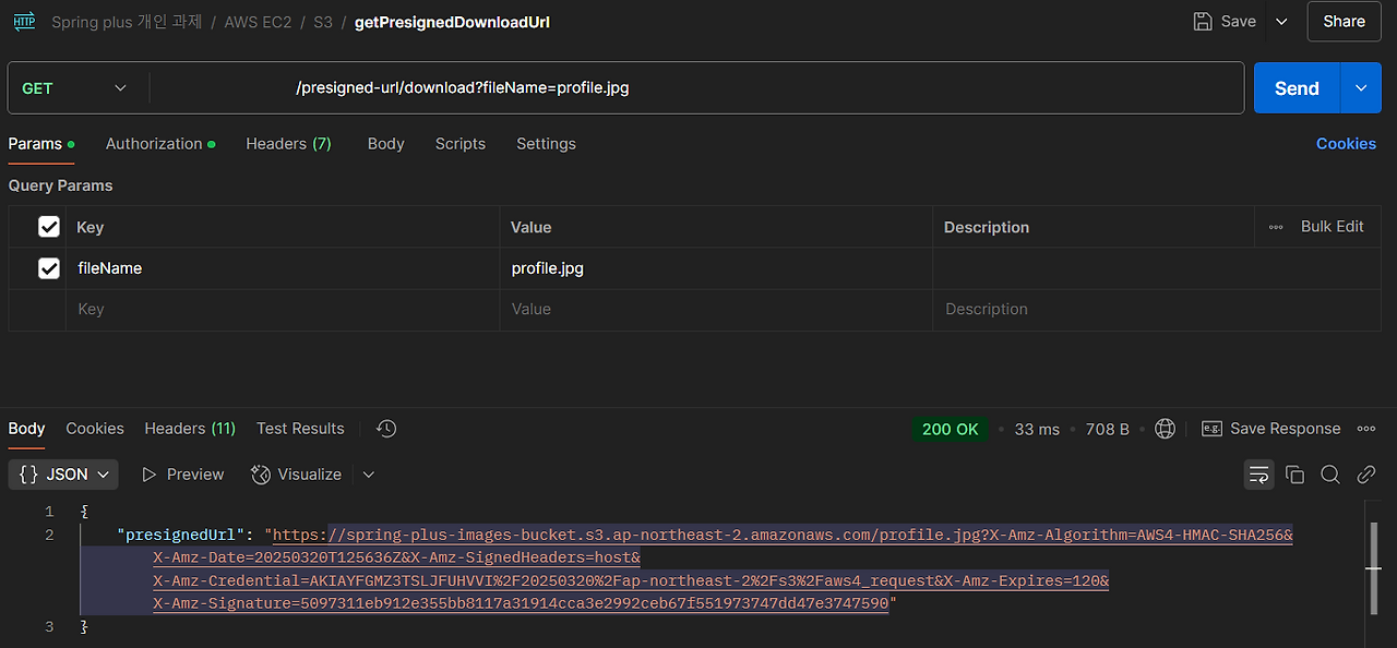Presigned URL 발급 요청: GET /presigned-url/download?fileName=profile.jpg