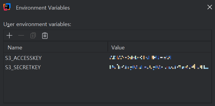 로컬에서는 인텔리제이 환경변수로 AccessKey와 SecretKey를 설정해놨기 때문에 정상 작동 되었던 것입니다.