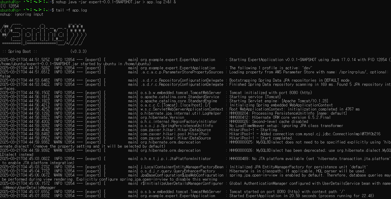 nohup을 사용하면 EC2 SSH 세션 종료 후에도 애플리케이션이 실행됩니다.