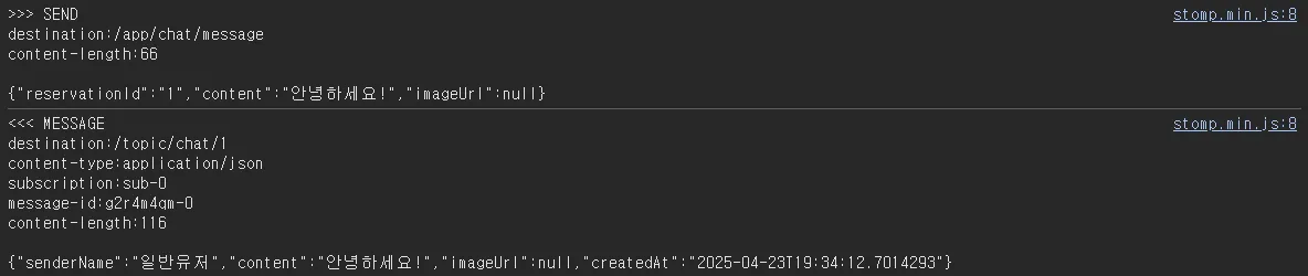 - `SEND /app/chat/message` 메시지 전송 요청