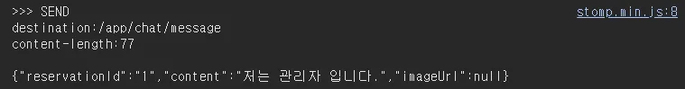 - `SUBSCRIBE /topic/chat/{reservationId}` 예약 ID 채팅방 구독