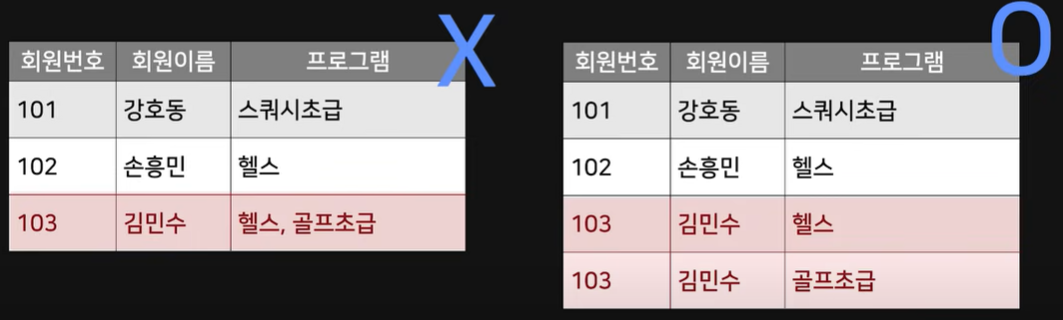 테이블의 모든 컬럼이 원자값을 가지도록 하여 데이터의 중복을 줄이는 것