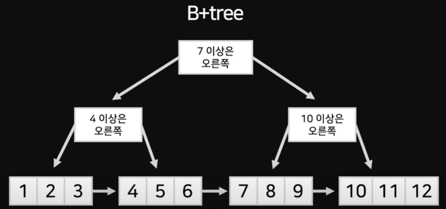 - 리프 노드끼리 연결되어 있음 (범위 검색 최적화)