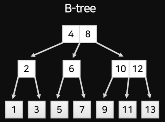 - 대부분의 RDBMS는 B+Tree 구조로 인덱스를 구현함