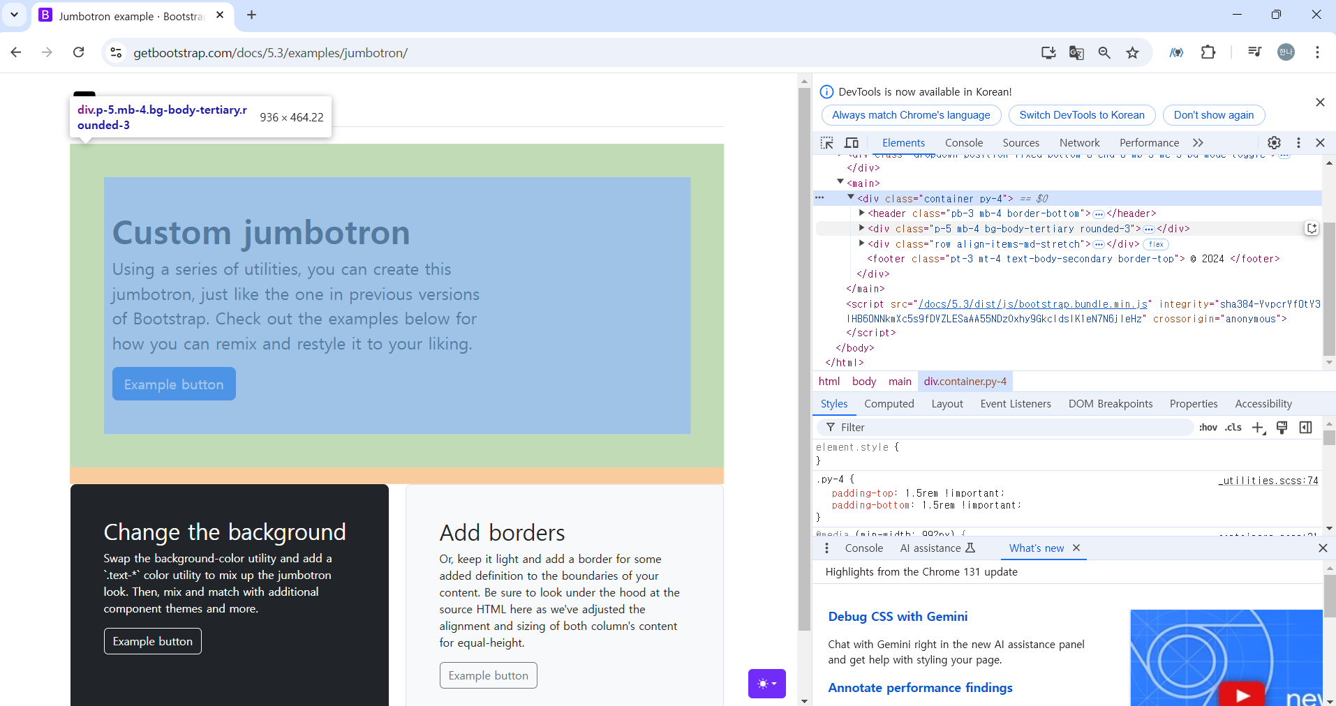 복사한 HTML 코드를 body 태그 안에 붙여넣으면 Bootstrap의 Jumbotron을 사용할 수 있다.