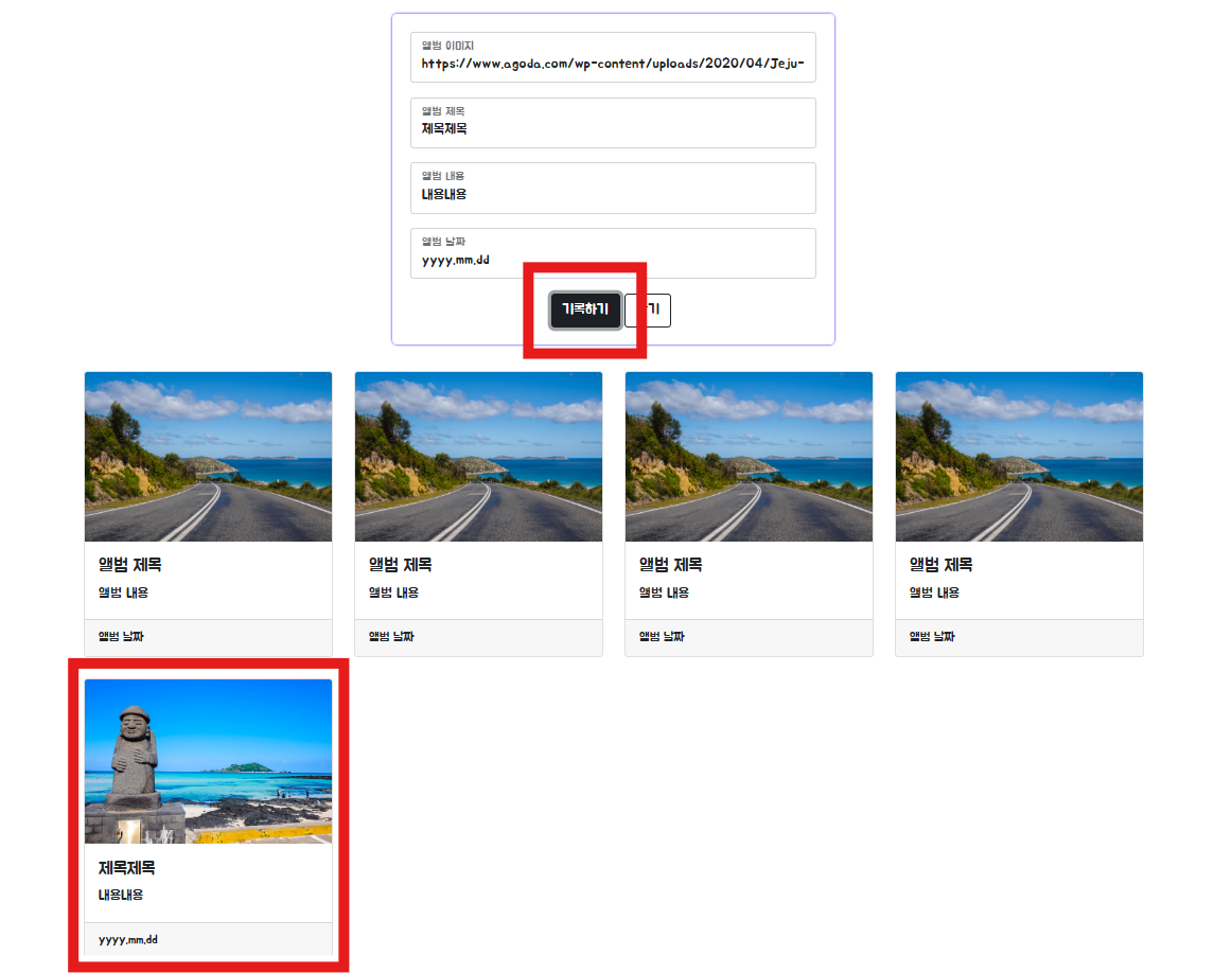 - 기록하기 버튼을 눌렀을 때, input 박스에 입력한 내용으로 카드를 추가로 만드는 기능 구현
