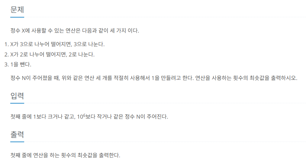 dp[n] = Math.min(recur(n-1), Math.min(recur(n/3), recur(n/2))) + 1;